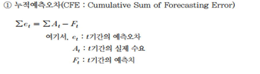 | 전체 예측기간 동안 실제수요와 예측수요 간의 차이, 즉 예측오차를 누적한 | |||