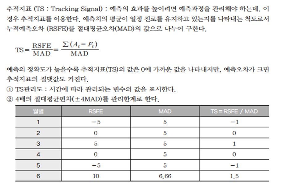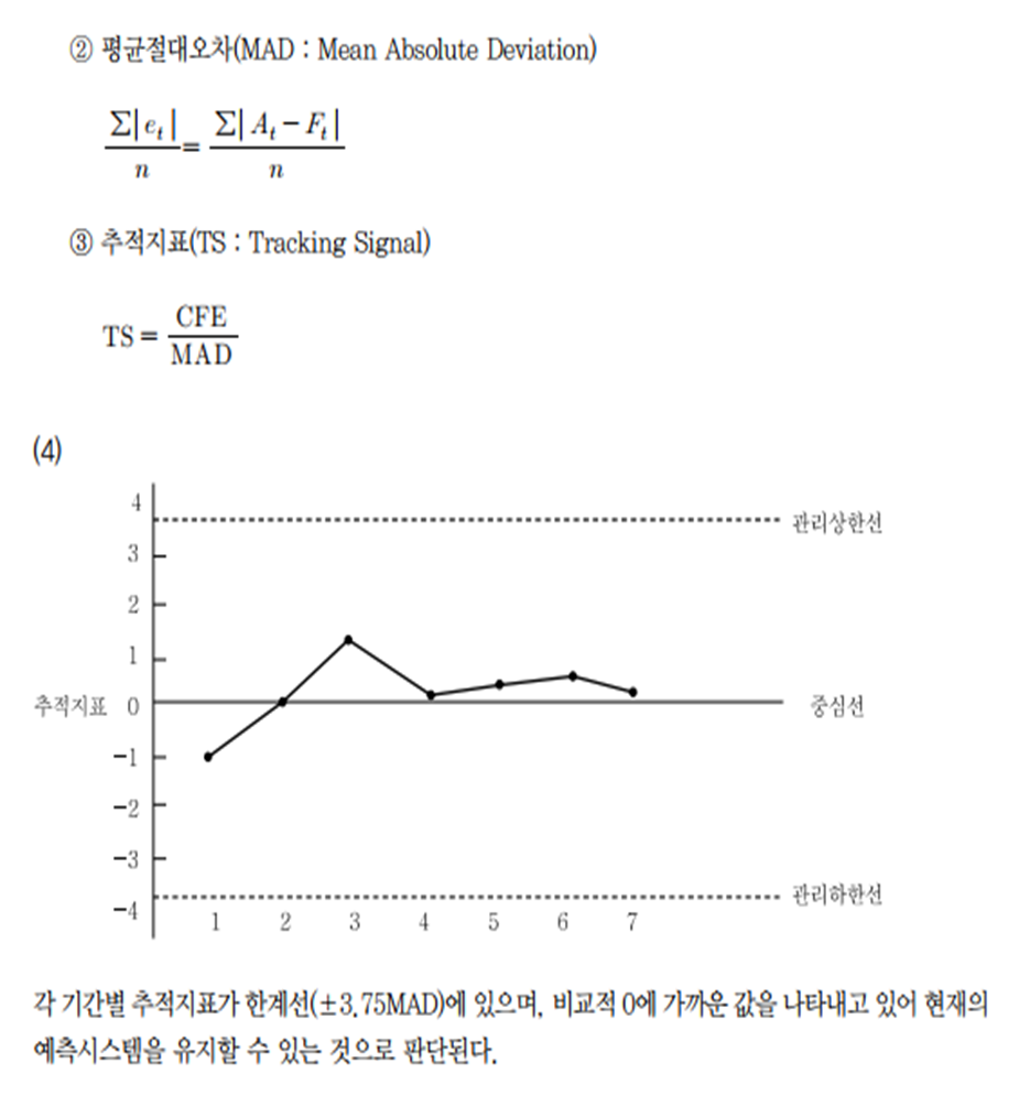 | ① | 예측기법이 실제수요변화를 정확히 예측하고 있는지를 나타내는 지표 | ||