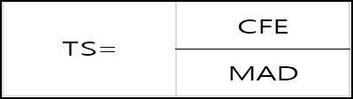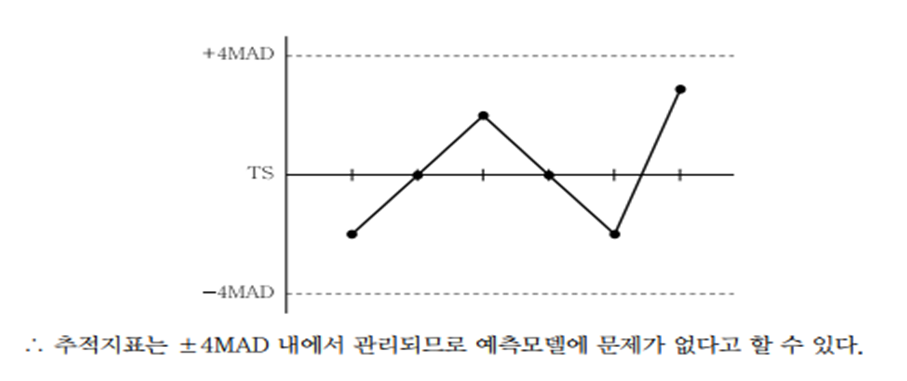 | (MAD:Mean Absolute Deviation), 추적지표를 구하고, 추적지표의 값이 | |||