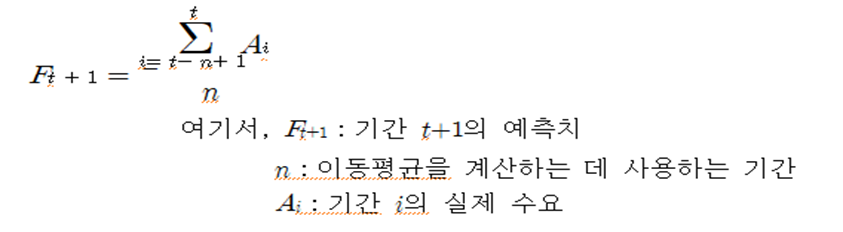| 있다. 여기에는 단순이동평균법, 가중이동평균법, 지수평활법 등이 있다. |