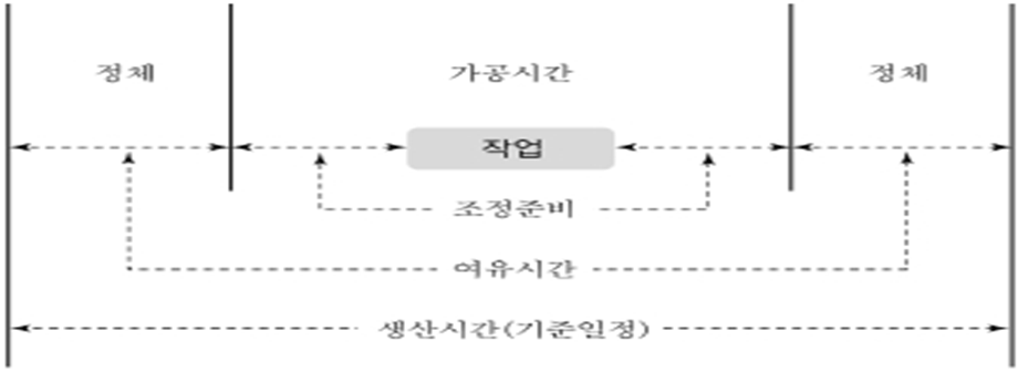 | 인원과 자재가 충분히 배정되고 비생산적 활동(가동준비, 대기)이 최소화 되며, | |||