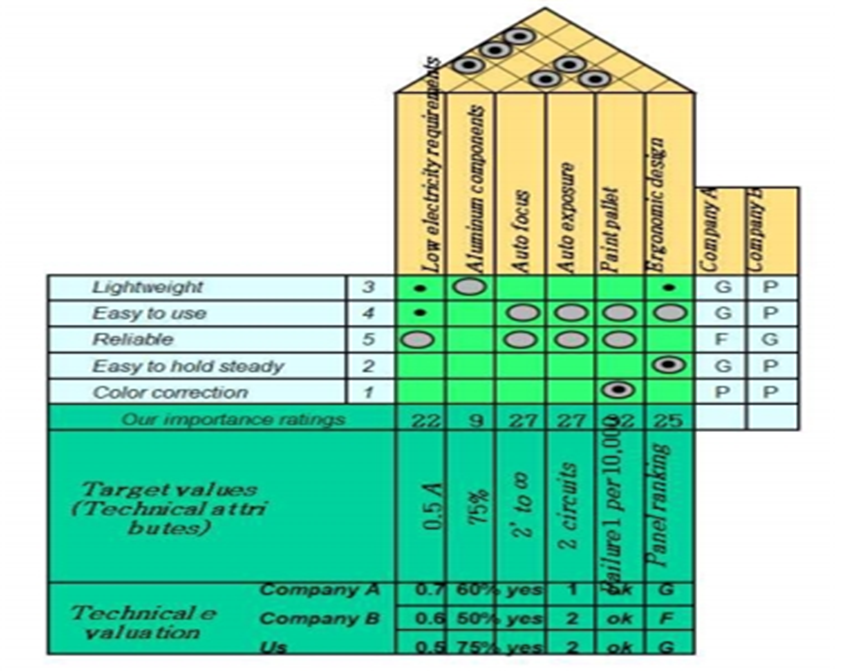 품질의 집(House of Quality)을 신제품 개발 사례를 들어서 설명하시오.