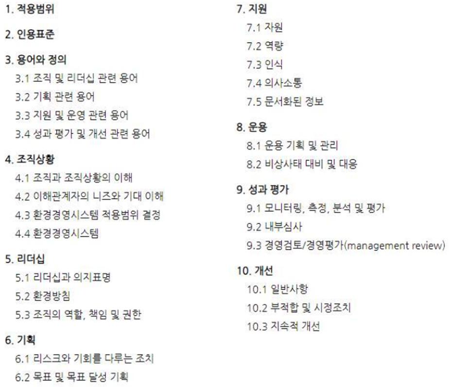 | 문) | ISO 14001:2015 구성과 내용 | ||