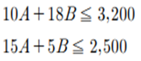 | 최대의 이익을 창출 할 수 있는 A와 B의 생산량을 선형계획법으로 결정하고자 | |||