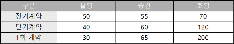 | 기대수익을 계산한 후 유리한 전략을 선정하시오. |
