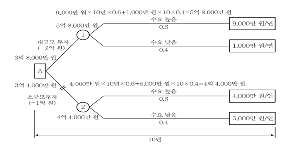 | 대규모 투자의 기대수익은 3억 8,000만 원이고, 소규모 투자는 3억 4,000만 원 | |||