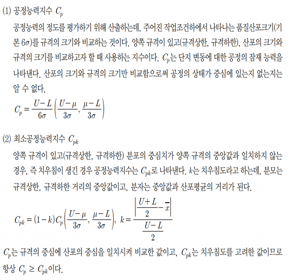 즉, 생산공정이 얼마나 균일한 품질의 제품을 생산할 수있는지를 반영하는