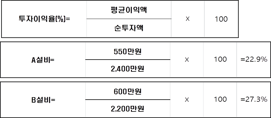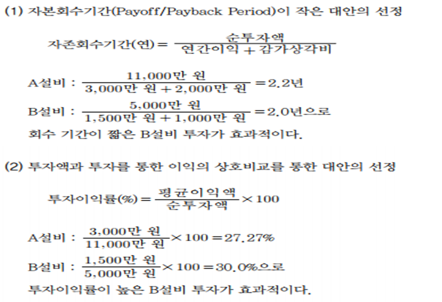 1) 설비투자에 투입된 투자액과 그 투자에서 기대되는 이익을 상호 비교하여 투