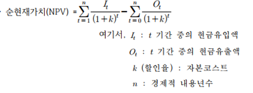 순현재가치(NPV) = 현금 유입액의 현재가치 - 현금 유출액의 현재가치