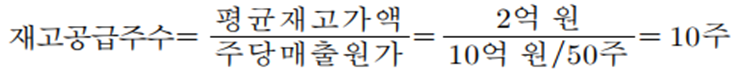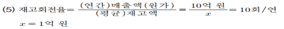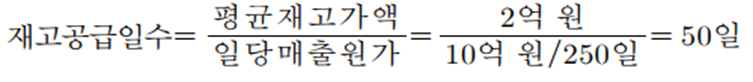 | ※ 재고 관련 자료:평균 총 재고액 2억 원, 연간 매출원가 10억 원 | |||